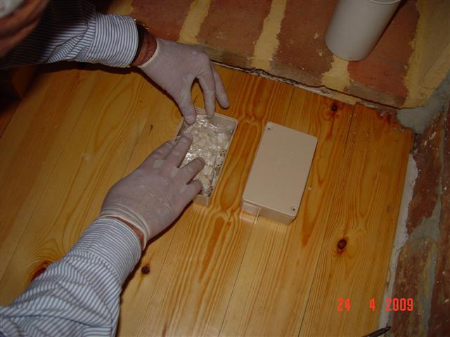 Termita Soldado. Es igualmente probable encontrar estos individuos. Son blancos y prácticamente de la misma talla que las obreras, pero poseen una cabeza hipertrofiada y más coloreada. Mucho menos numerosos que las obreras y provistos de una cabeza muy quitinizada con 2 grandes mandíbulas, están encargados de la protección de la población contra los enemigos (principalmente las hormigas). Su cabeza hipertrofiada no les permite alimentarse por sí mismos y son las obreras las que los alimentan mediante trofalaxia. Cuando la infestación es masiva, es posible observar también a los reproductores secundarios, que se llaman neoténicos. Se parecen a las obreras, pero son más largos (5-6 mm.) y poseen sobre el dorso dos pequeños bosquejos de alas. Son capaces de desplazarse por las galerías creadas por las obreras y de formar, un poco más lejos, una nueva colonia.